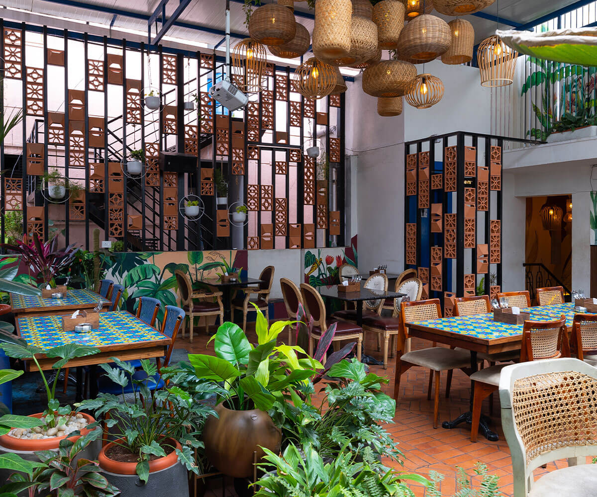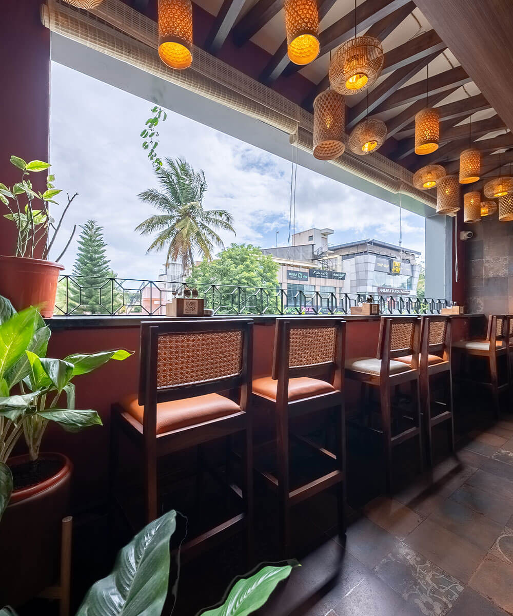 Dilute Barmen Kitchen in BanashankariStage 2, Bengaluru, presents a harmonious blend of rustic charm and contemporary design. The establishment features a multi-level layout that includes an inviting rooftop lounge, offering panoramic city views.