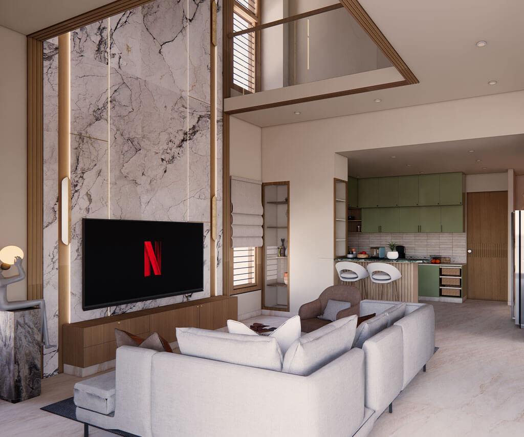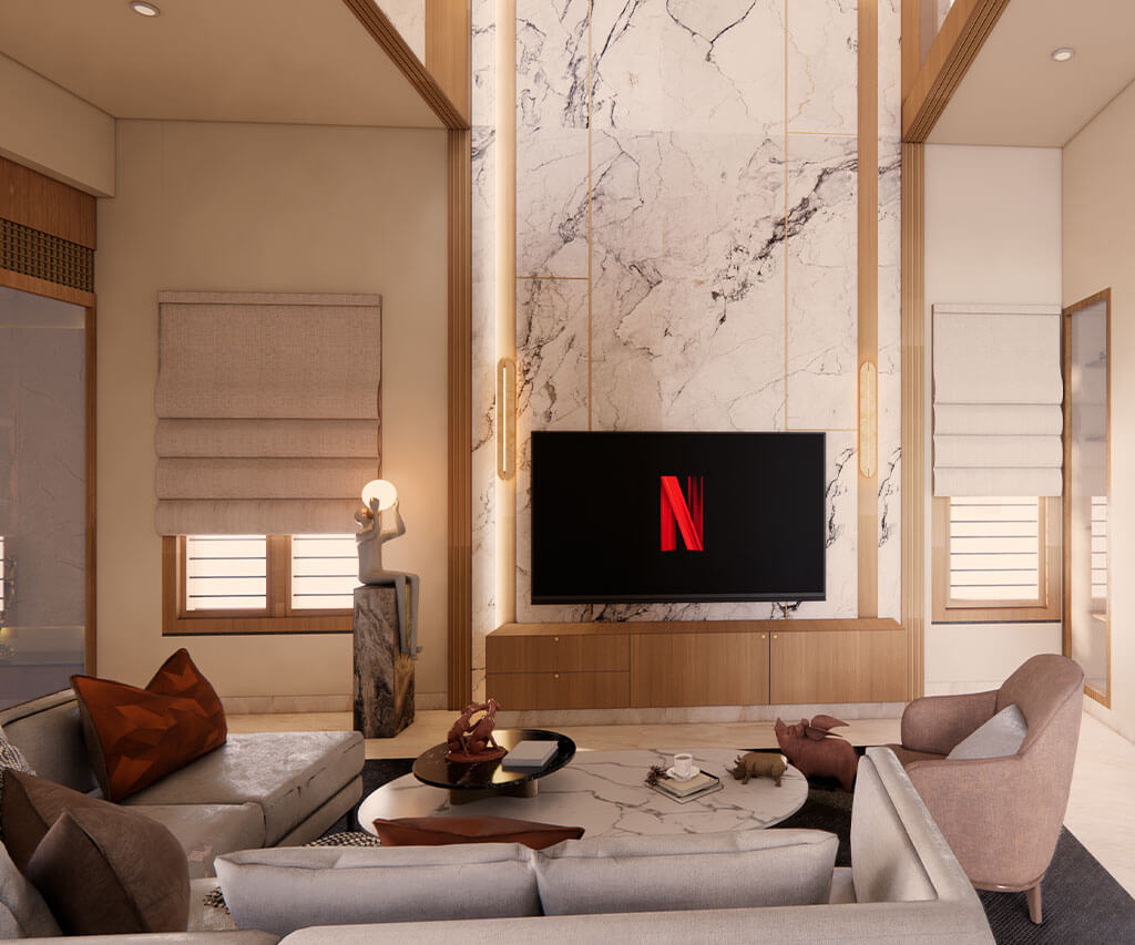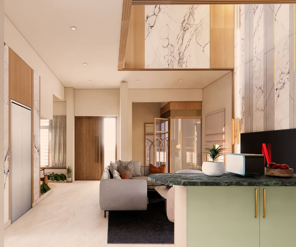 Contemporary modern living in Bengaluru adapts to the city’s pleasant climate. Designs prioritize natural light and ventilation through large windows and open layouts, minimizing the need for constant air conditioning. This approach creates comfortable interiors that embrace the region.