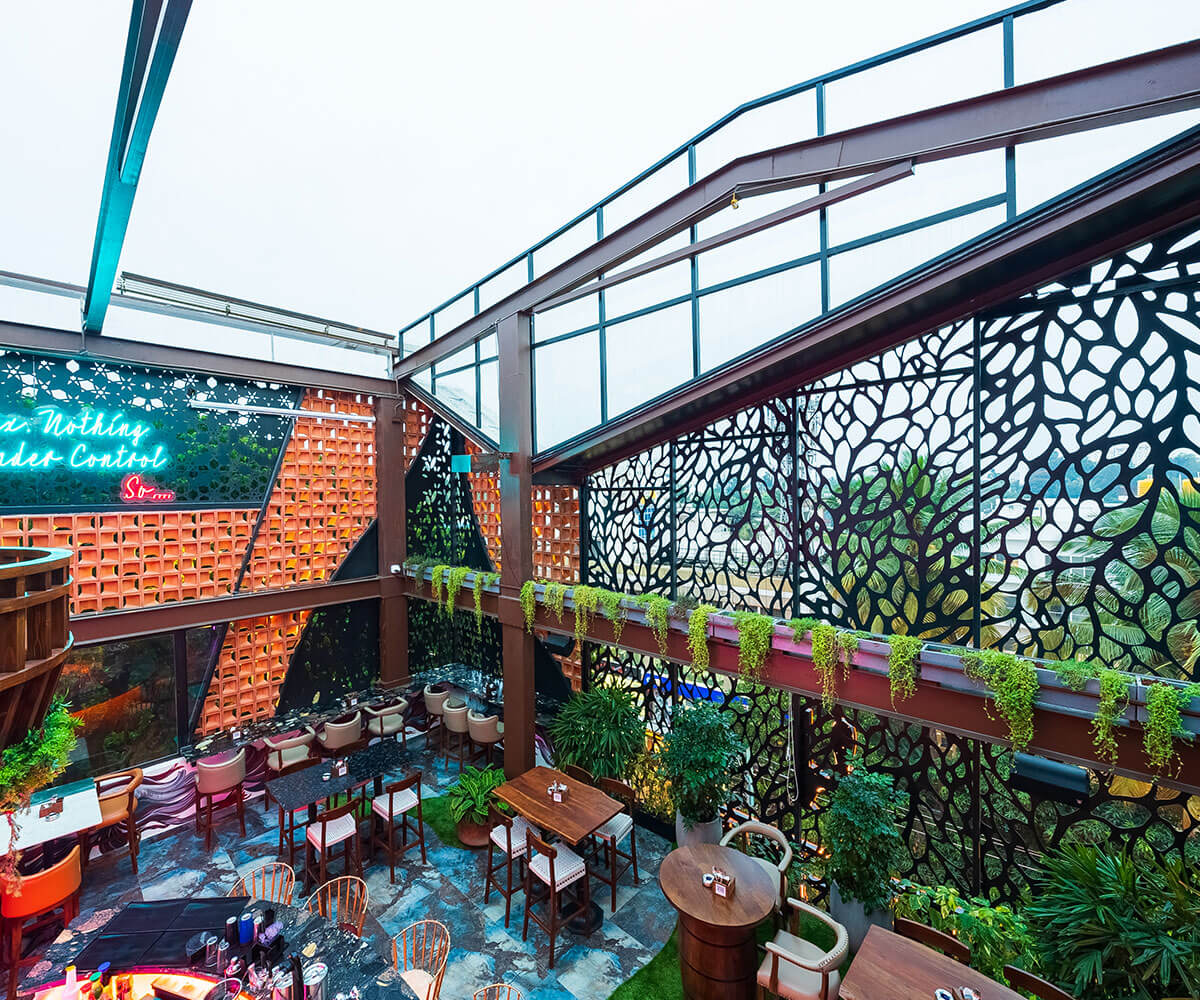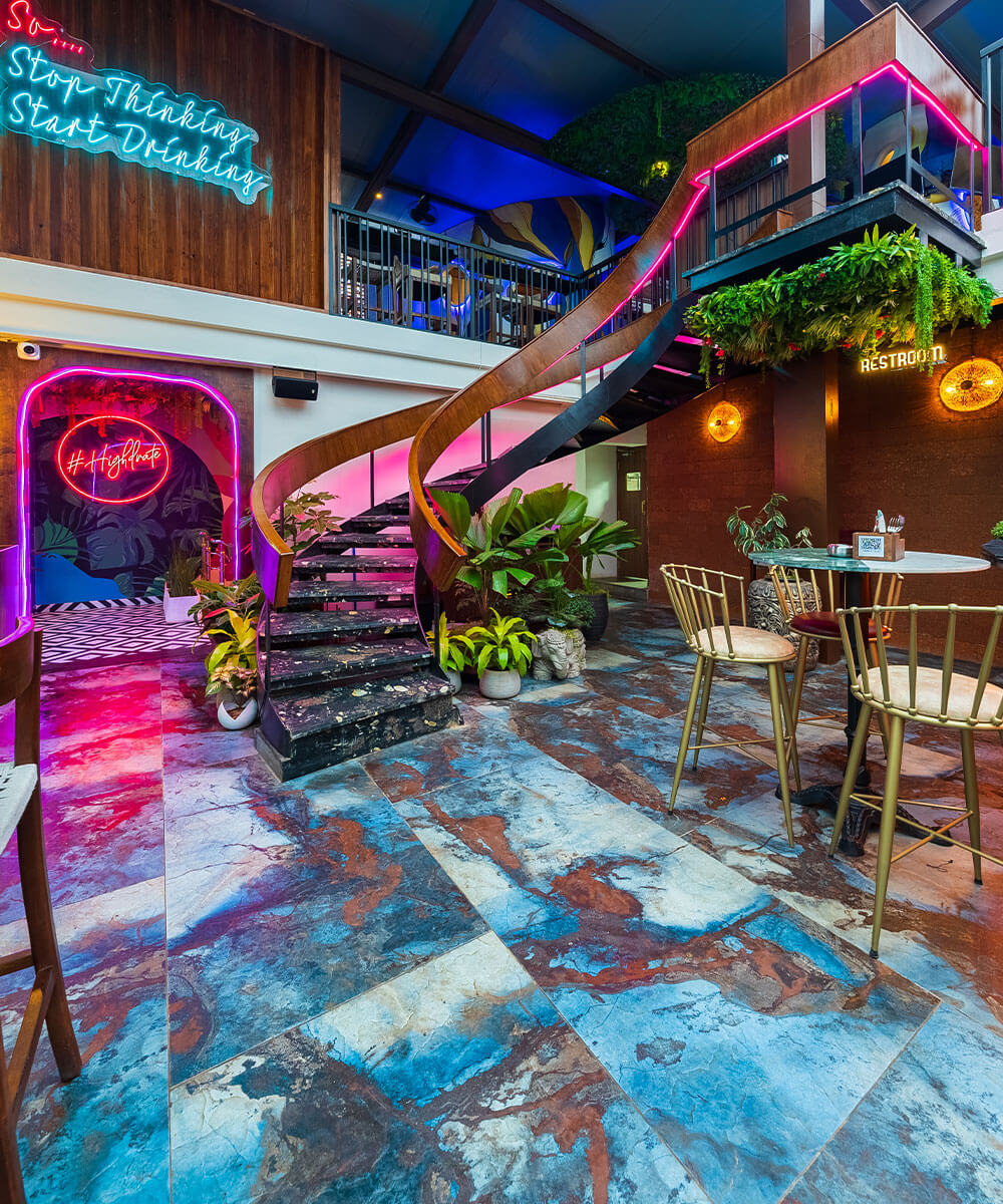 High Drate in Banashankari Stage 2, Bengaluru, is a thoughtfully designed multi-level hospitality space that combines modern aesthetics with functional excellence. The architectural design focuses on clean lines, open layouts, and a seamless flow between indoor dining areas and an inviting rooftop lounge.